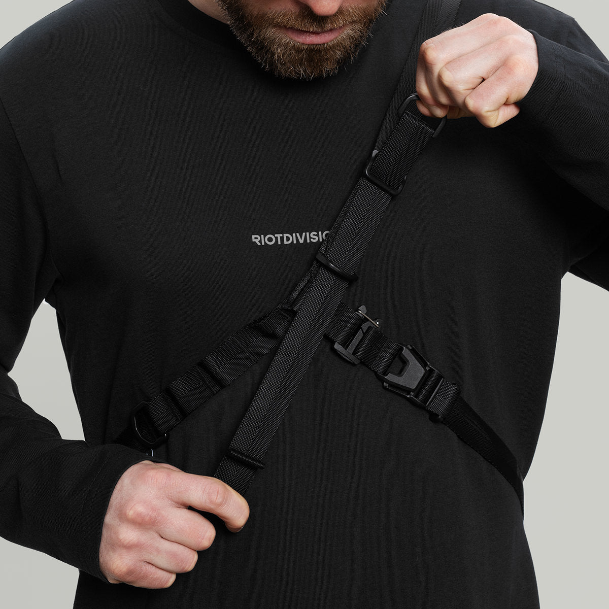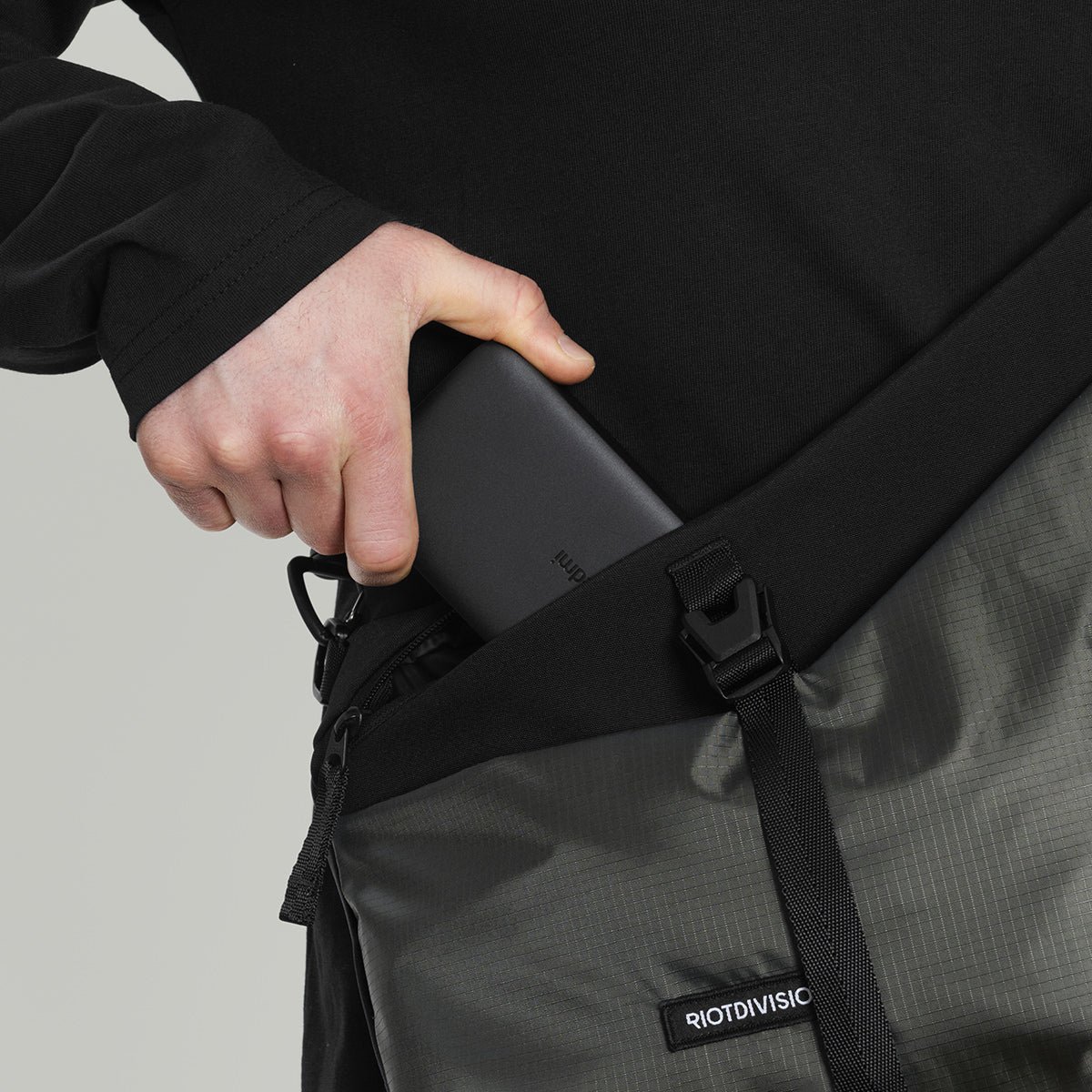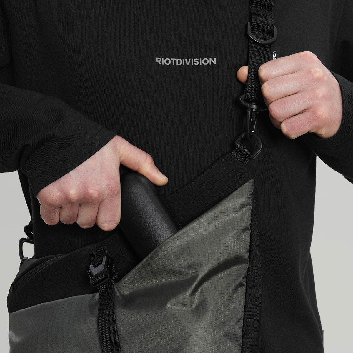 Utility asymmetrical shoulder bag. Perfect for carrying everyday objects.