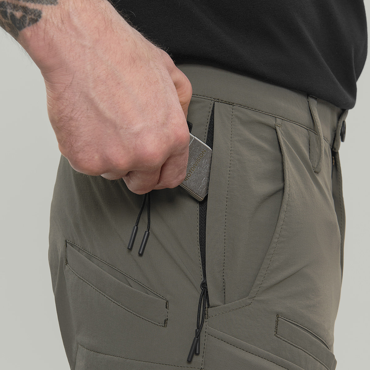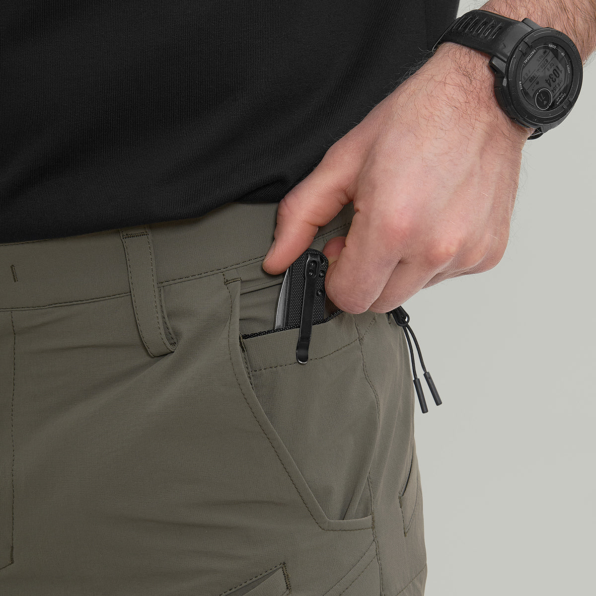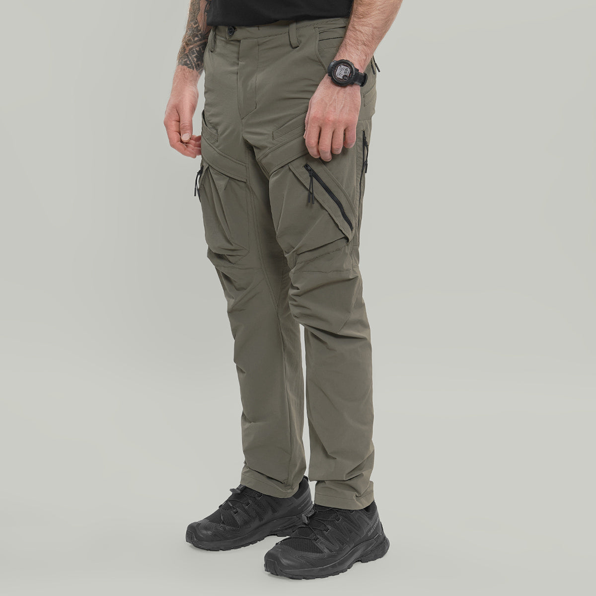 2 pockets pants made of WR coated stretchable nylon mix. Gen.4 gets additional pockets upgrades and other minor changes.