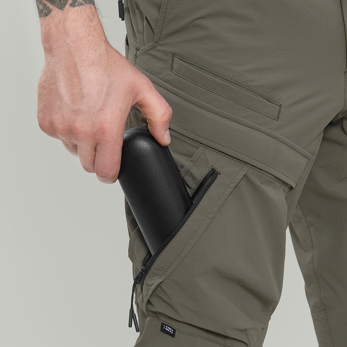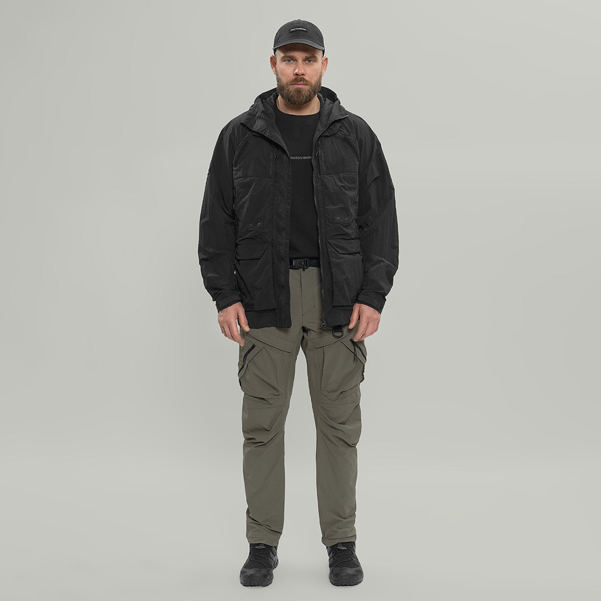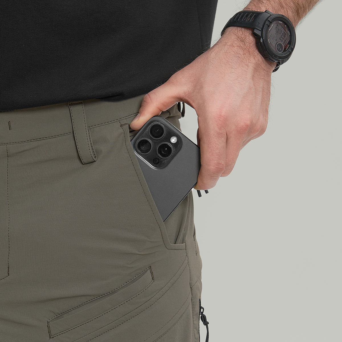 2 pockets pants made of WR coated stretchable nylon mix. Gen.4 gets additional pockets upgrades and other minor changes.