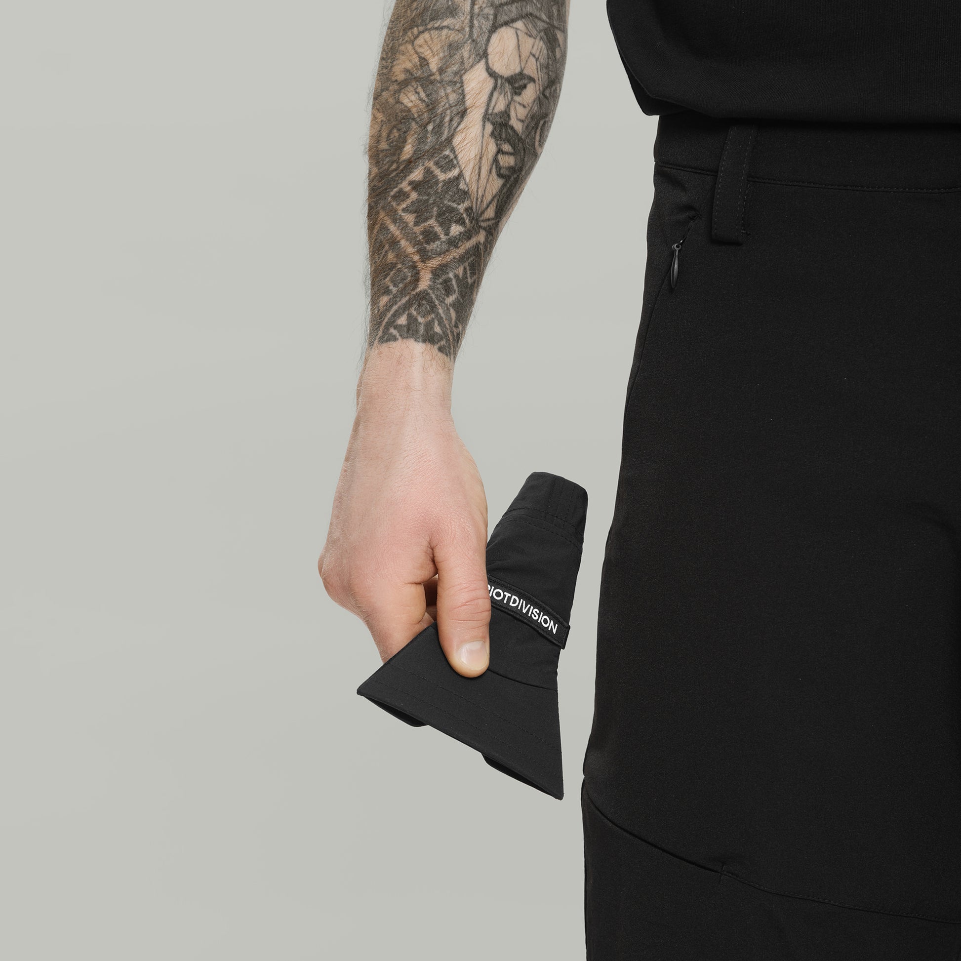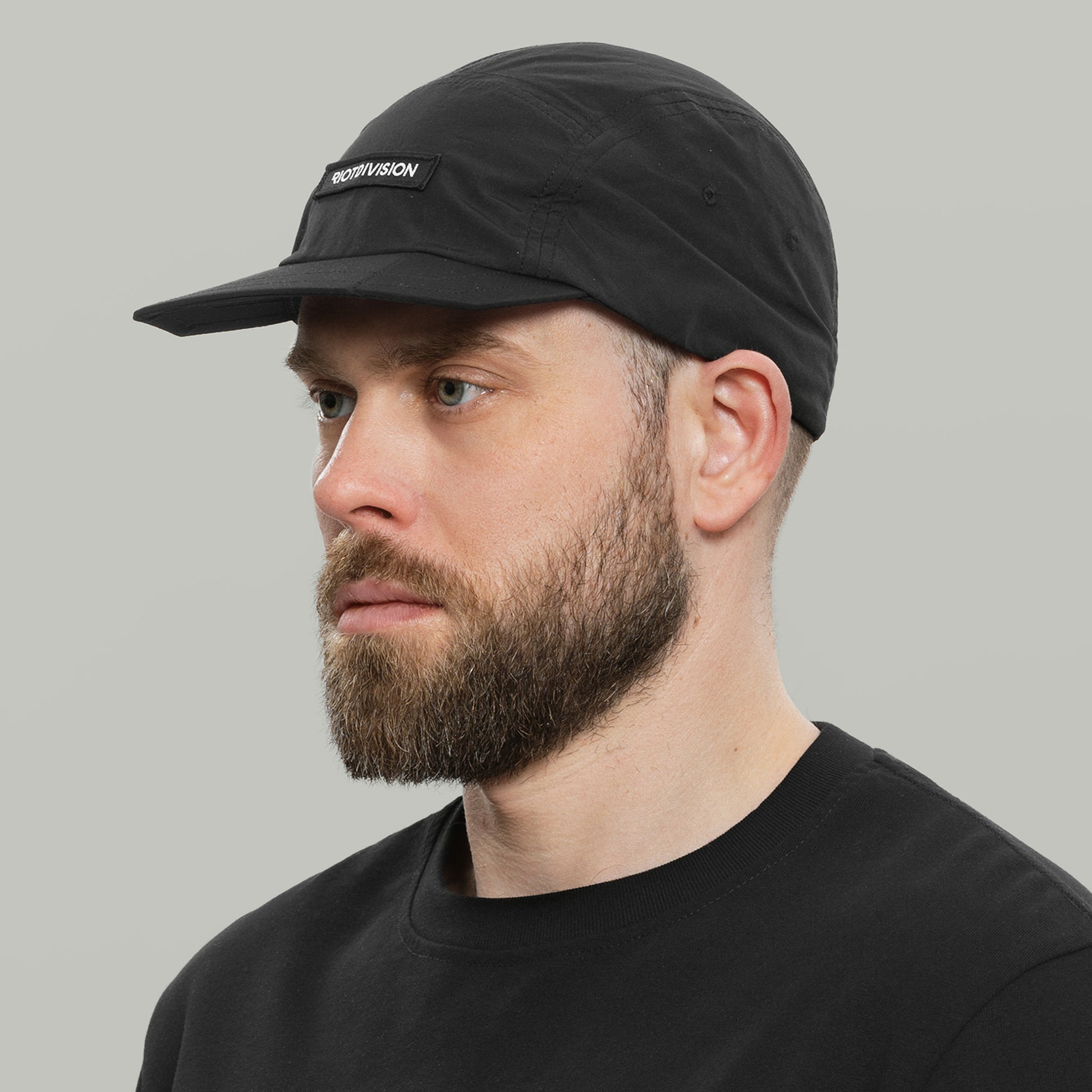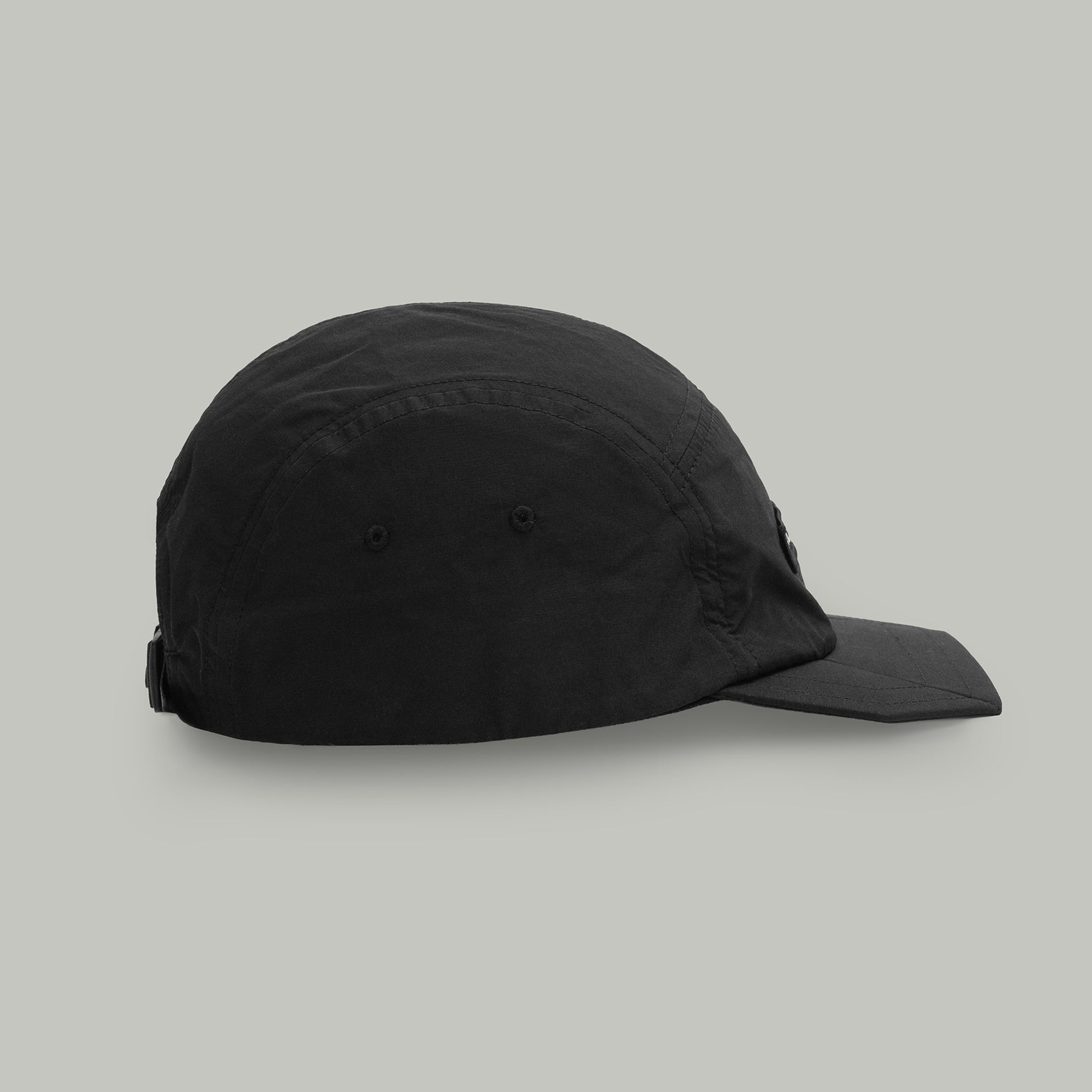 5 panel packable cap made of lightweight DWR coated nylon/cotton mix.