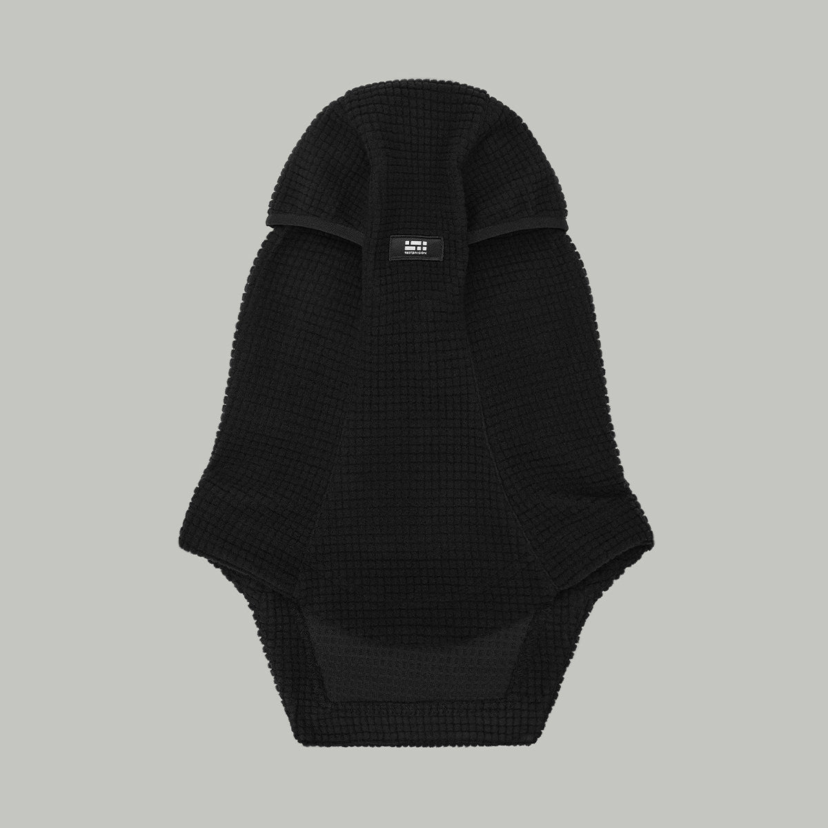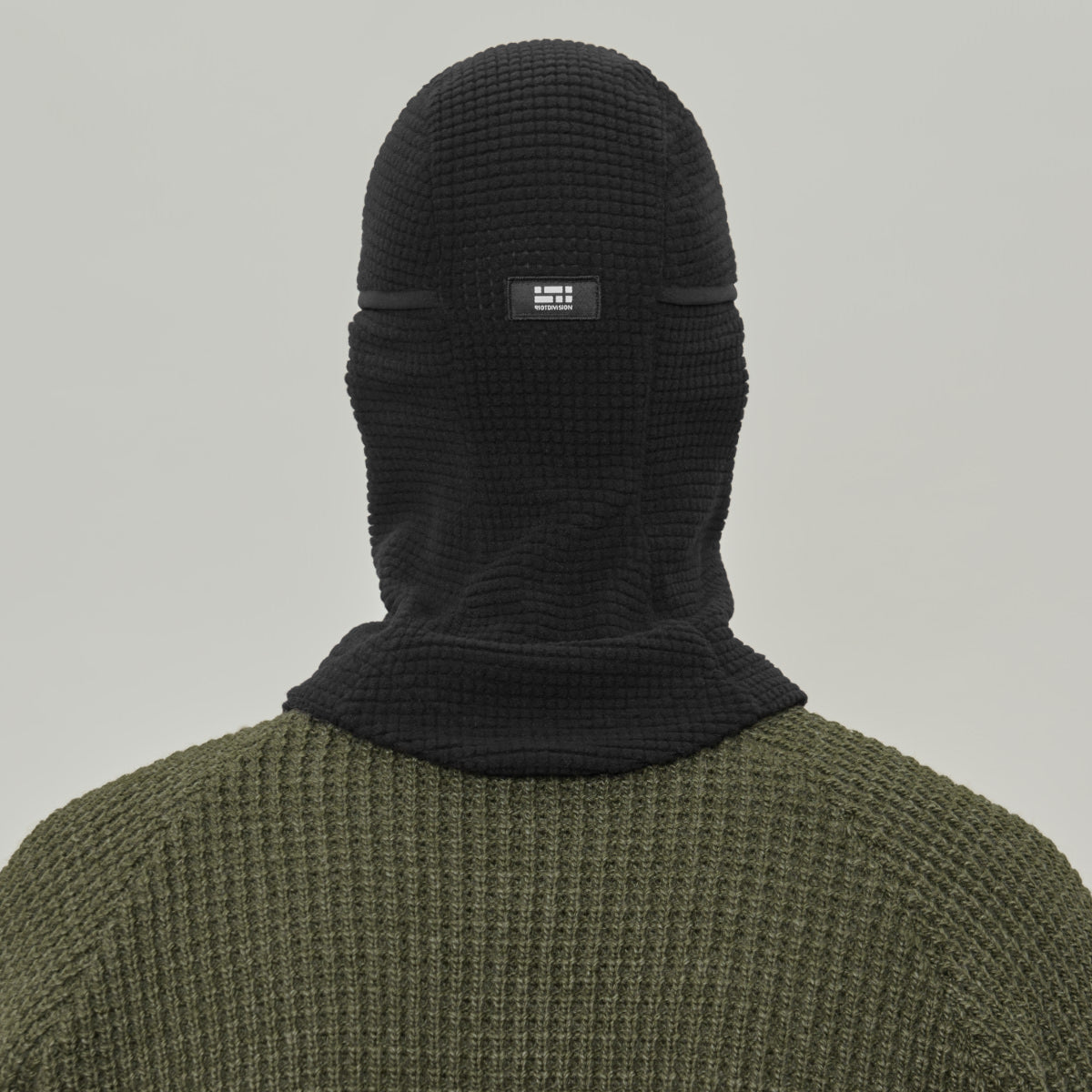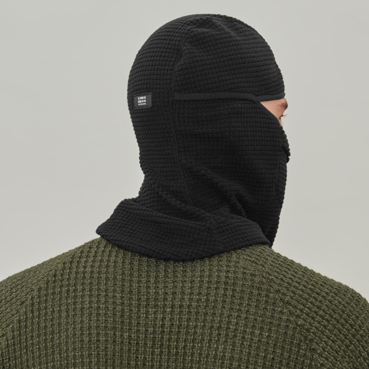 Balaclava made grid fleece. May be worn with the exposed eyes only, face only or as a neck protector.