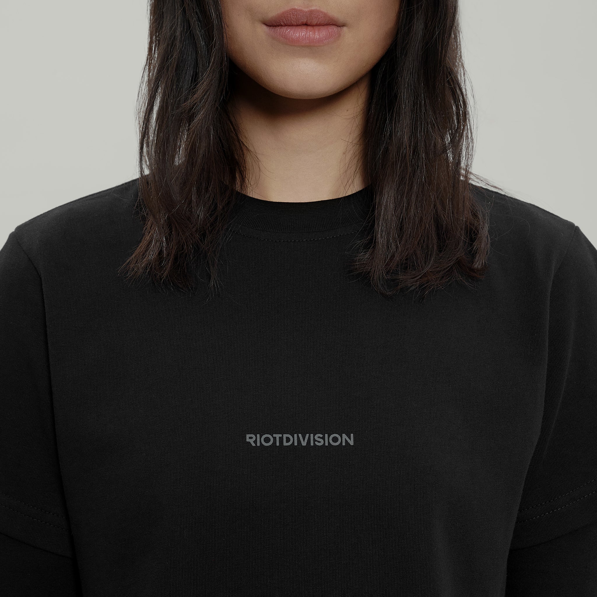 Branded oversized blank t-shirt with women's specific cut.