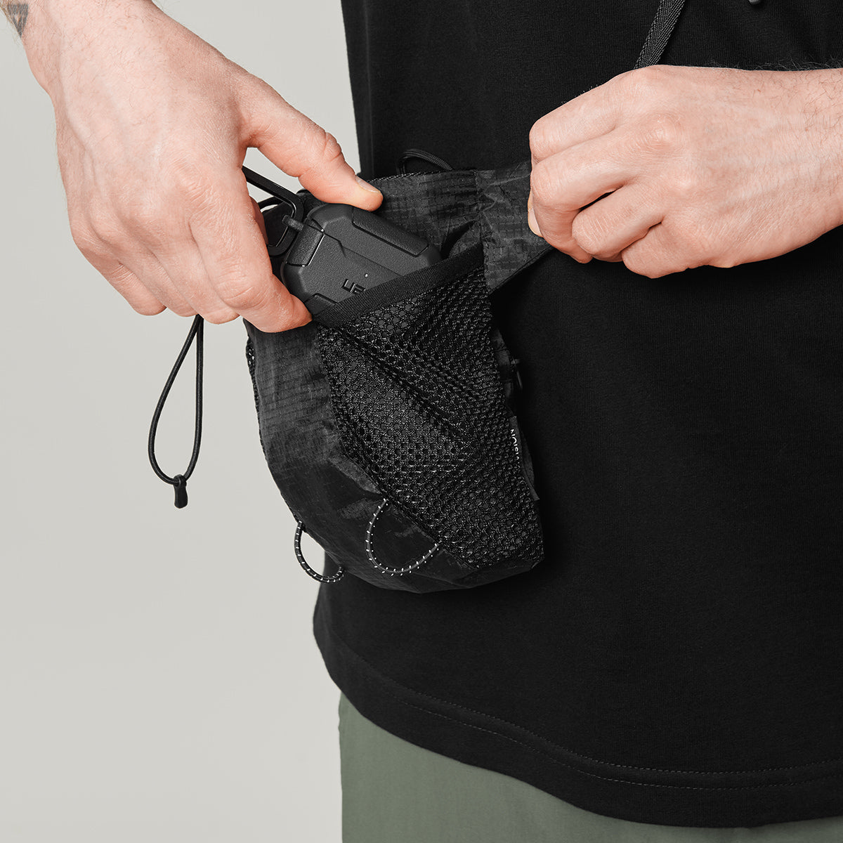 Everyday compact shoulder/waist bag, inspired by climbing chalk bags.