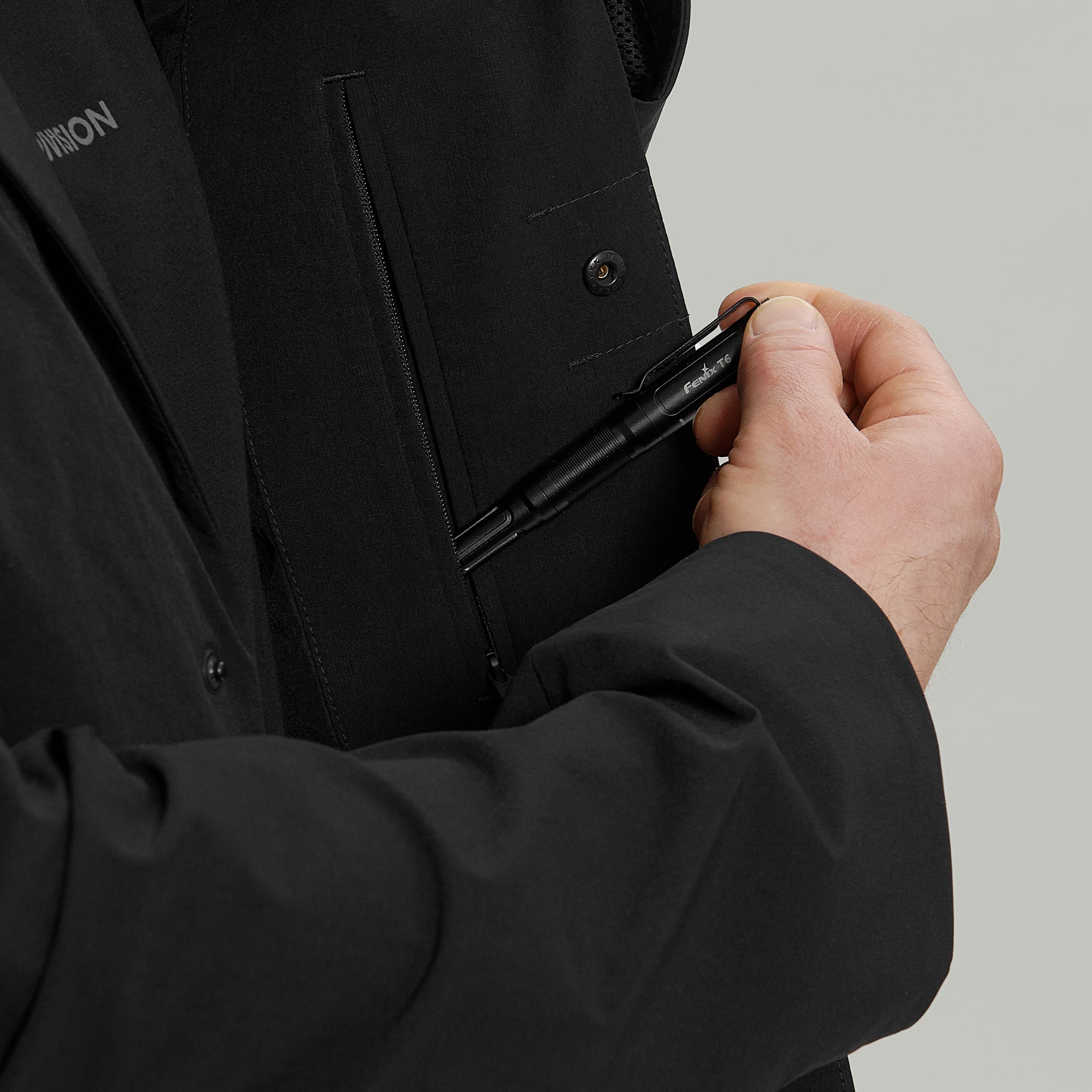 - 1 outer and 2 inner chest zipped pockets