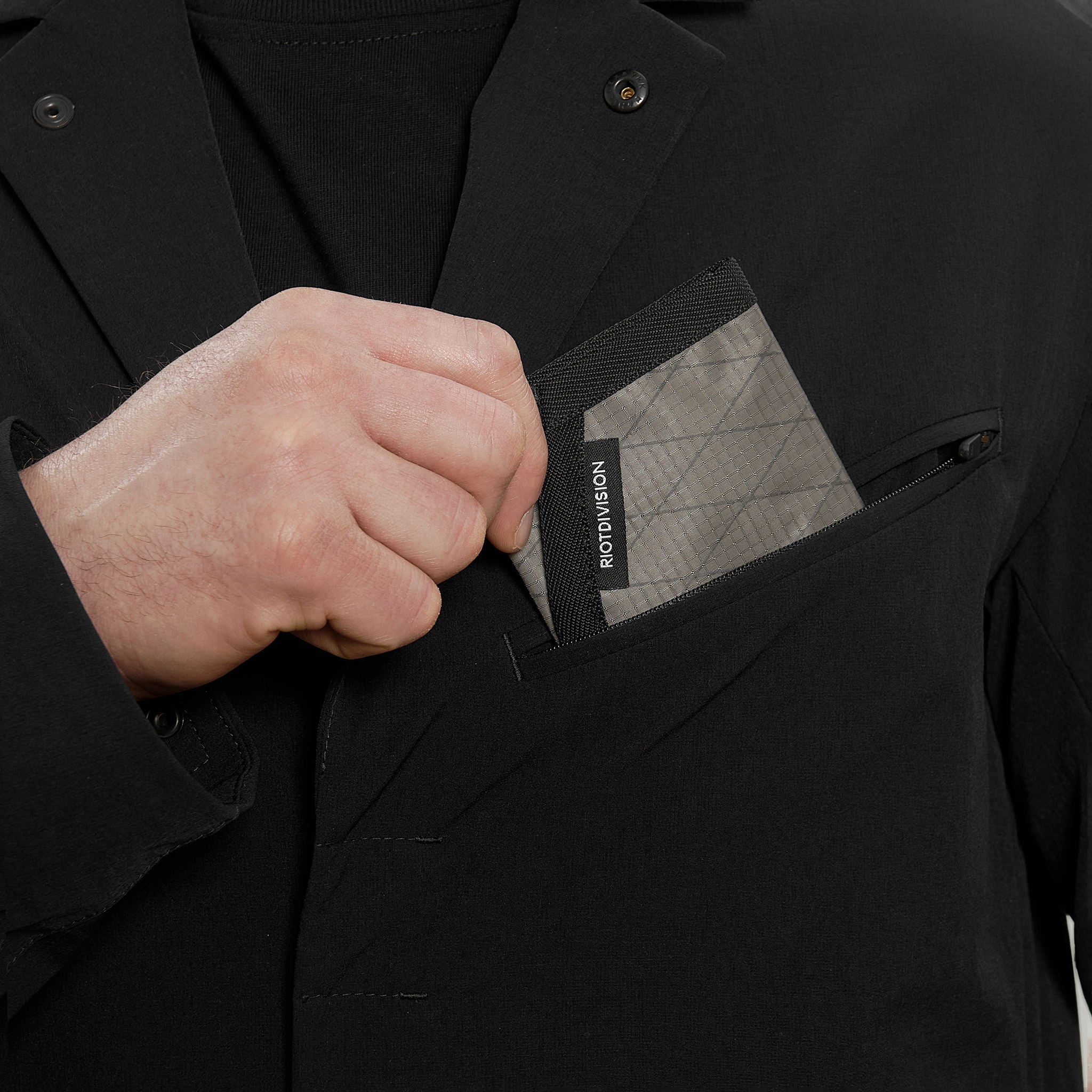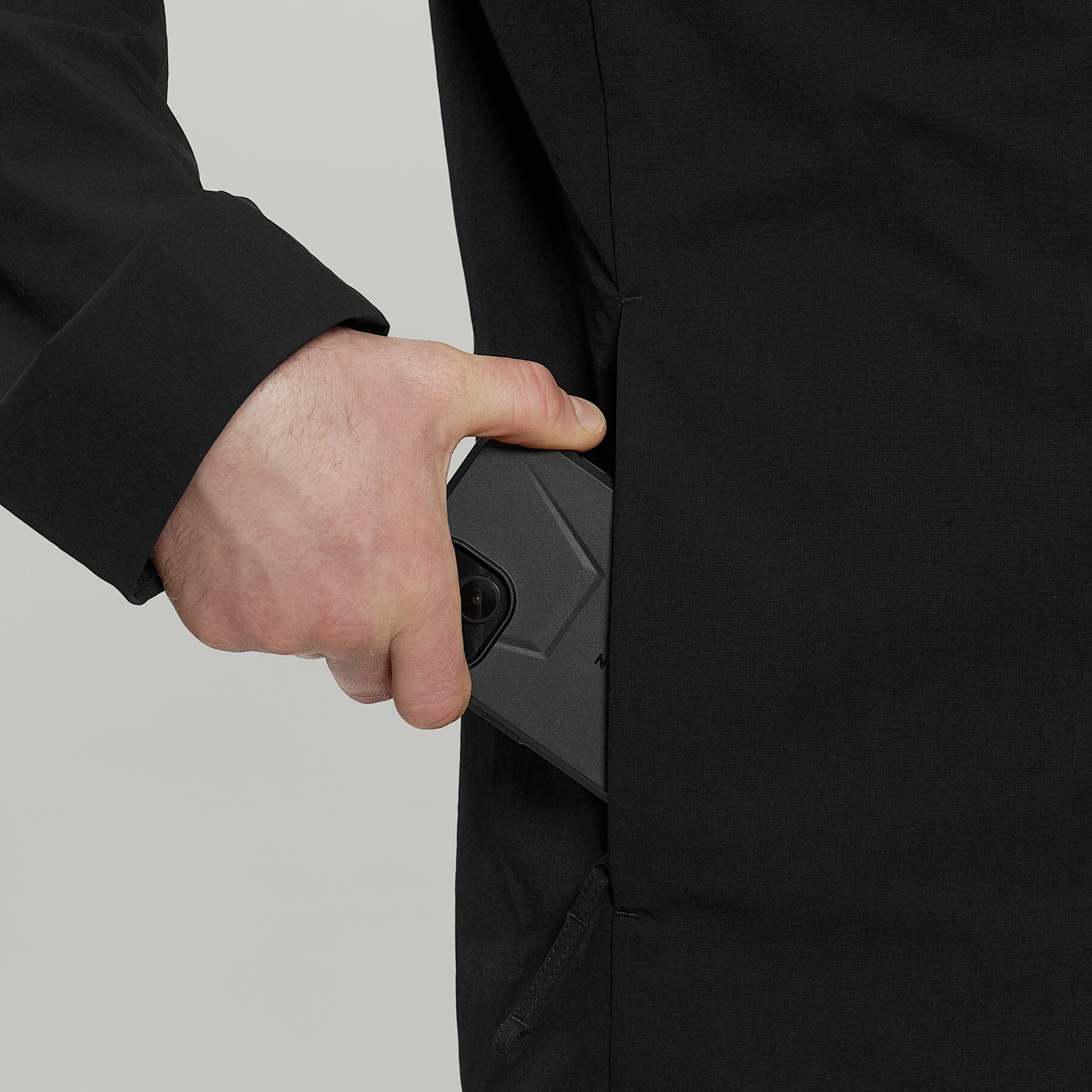Men's blazer made of stretchable DWR coated nylon.