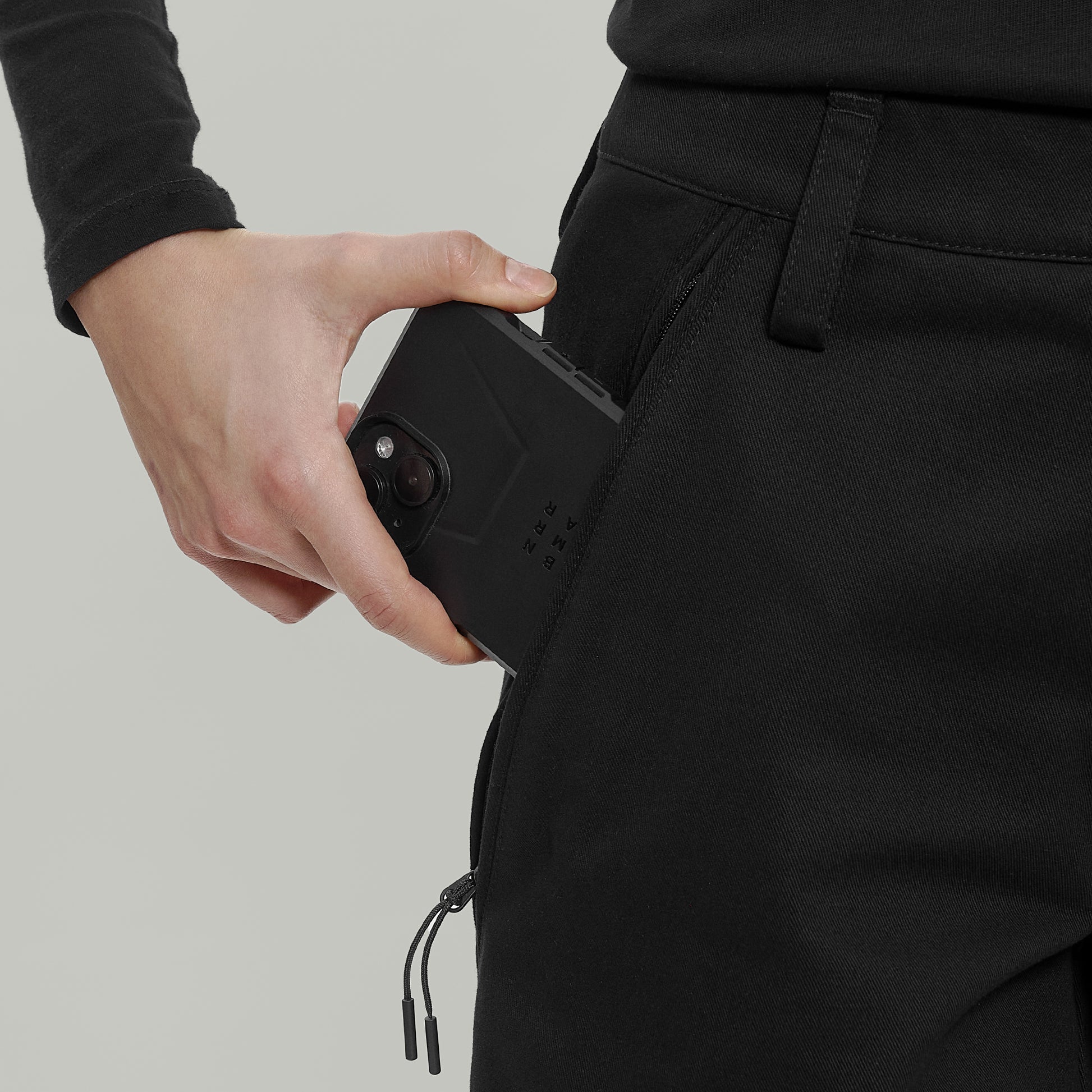 - zipped pockets on the thighs