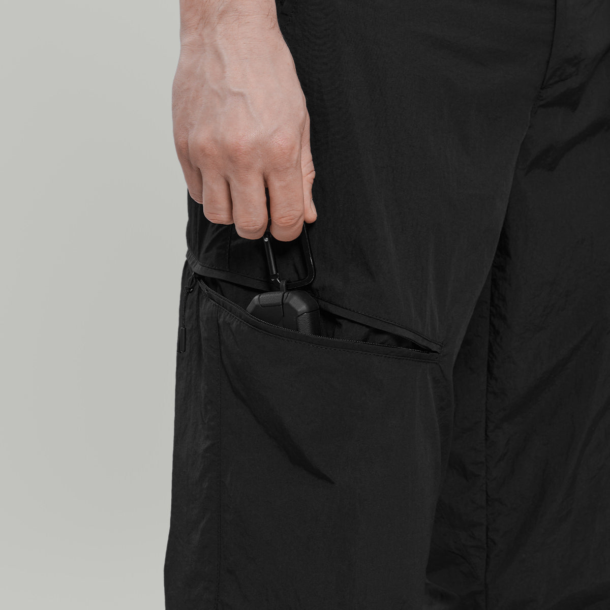 Minimalistic pants made of lightweight nylon fabrics.