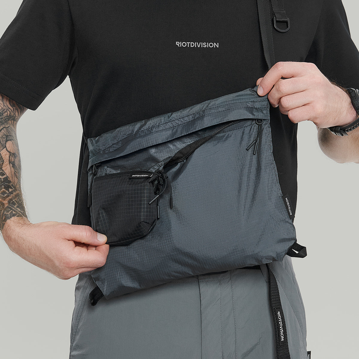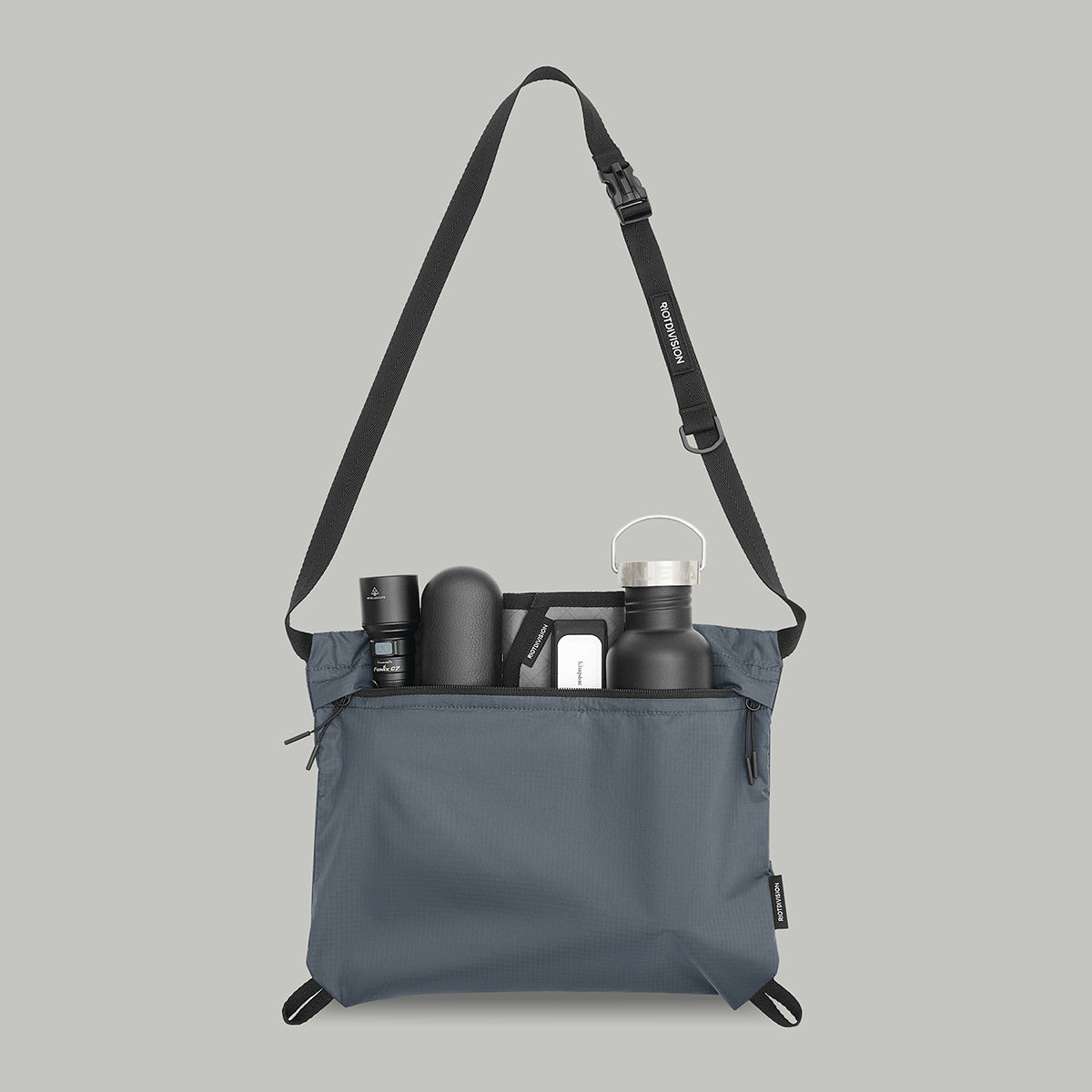 Our interpretation of classical musette bag. Lightweight and self-packable, with additional stabilizing strap.