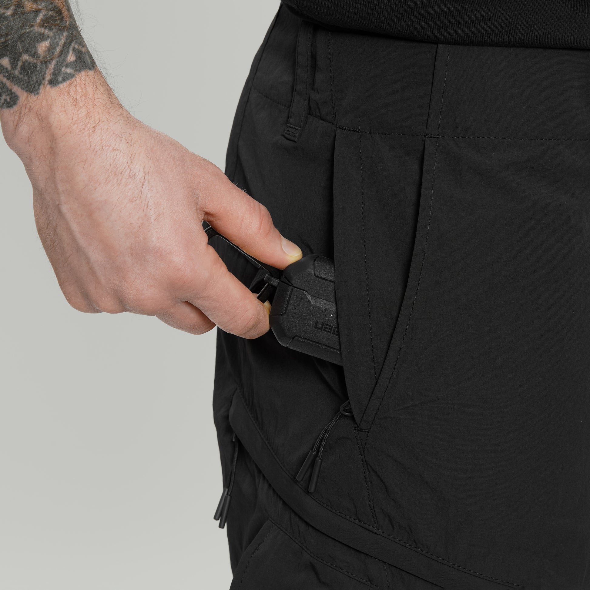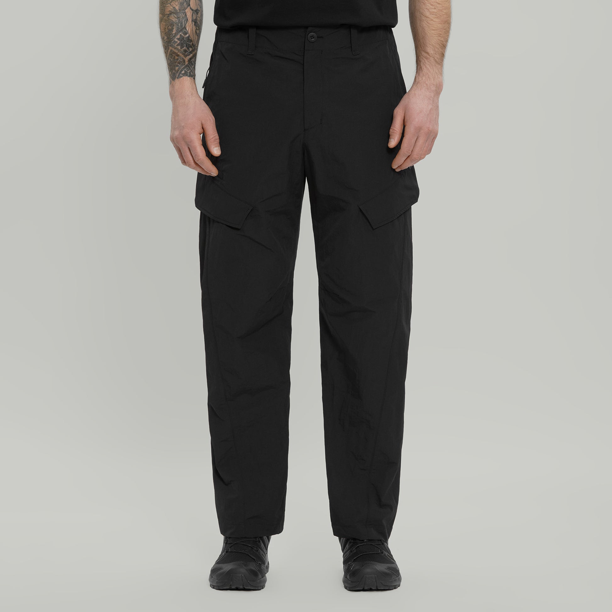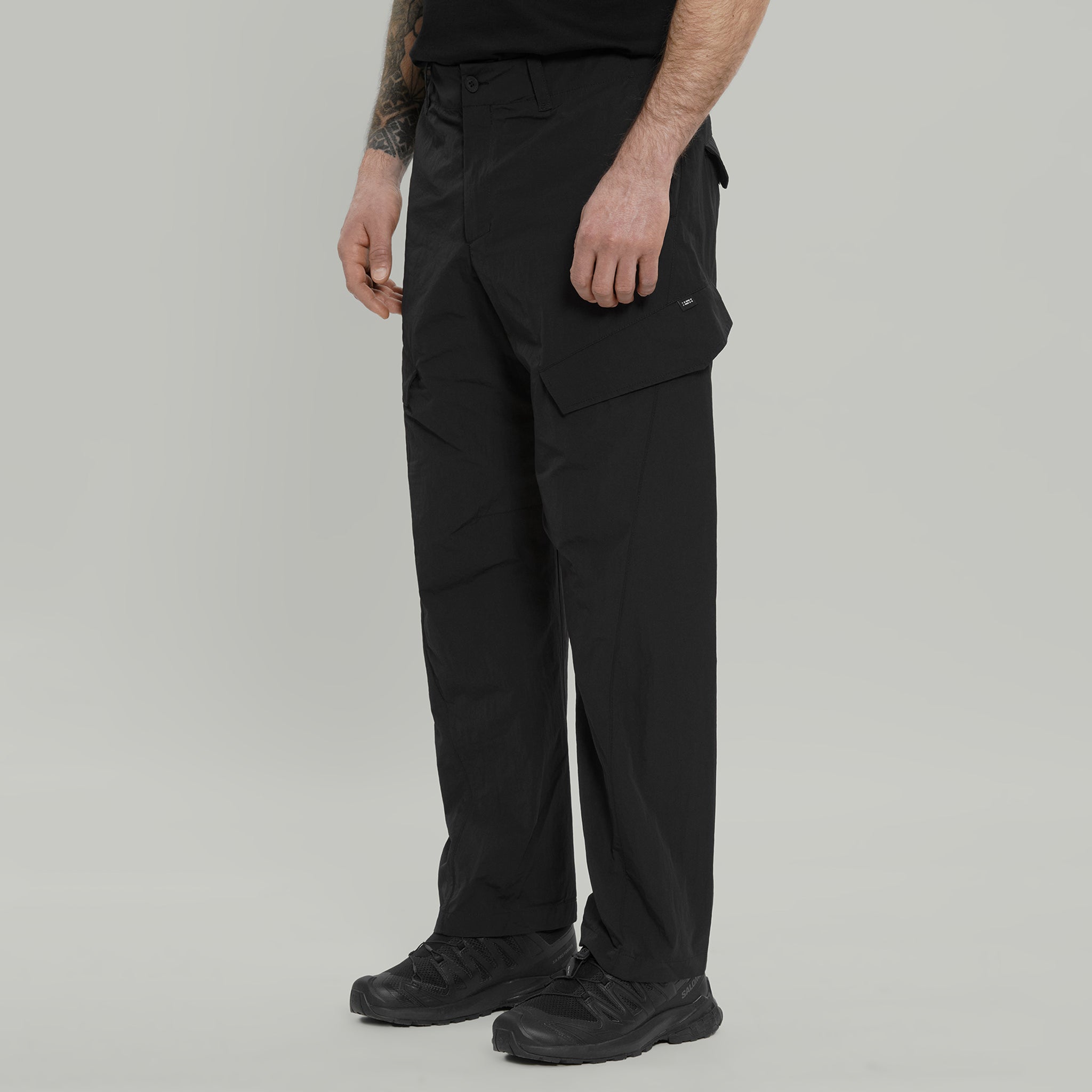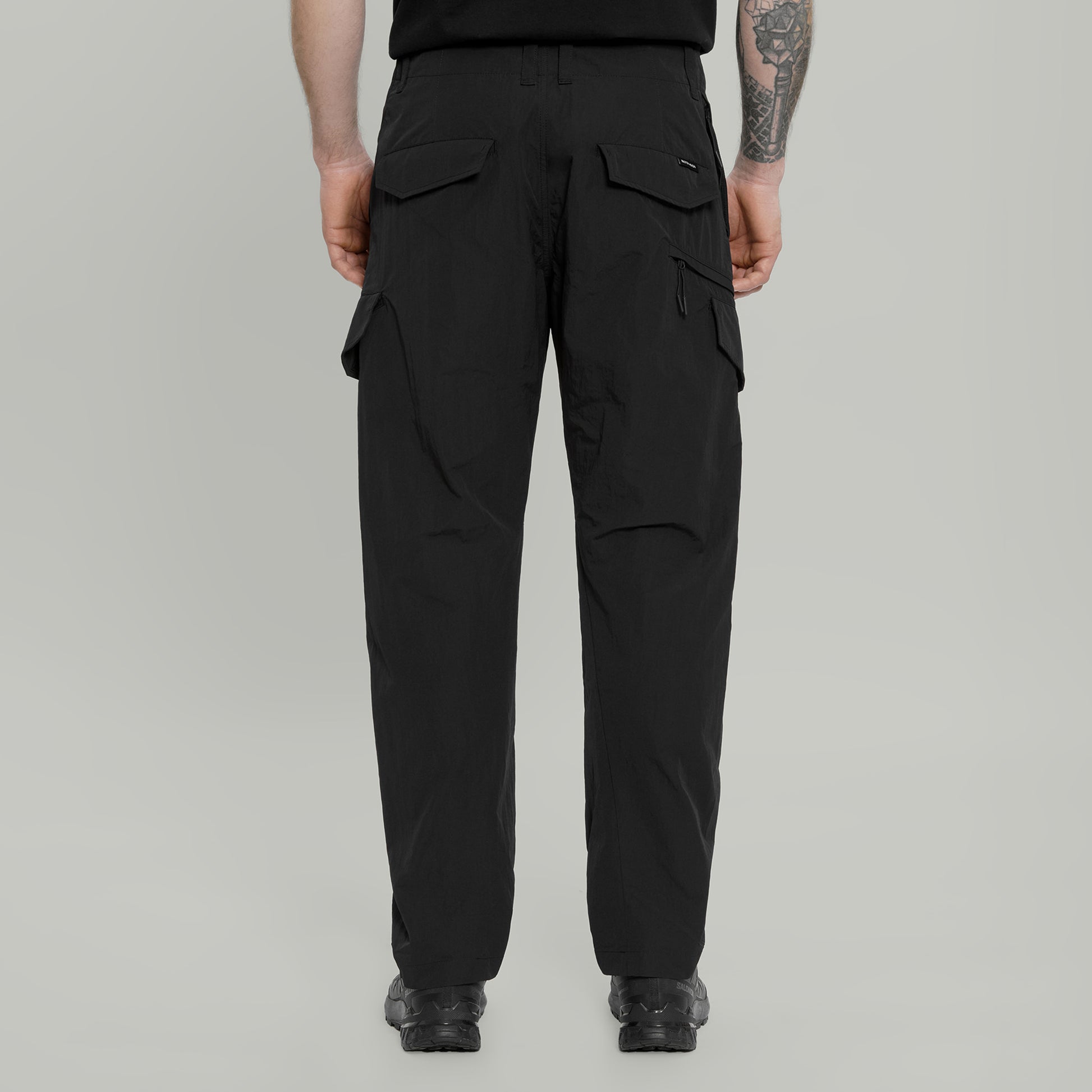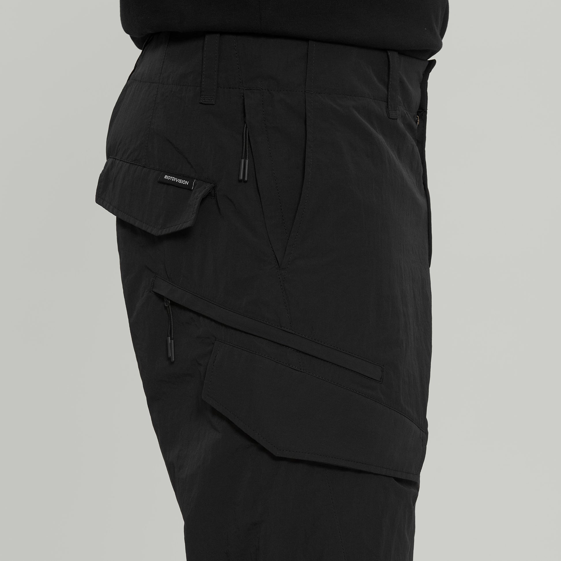 Cargo pants made of lightweight nylon fabrics.