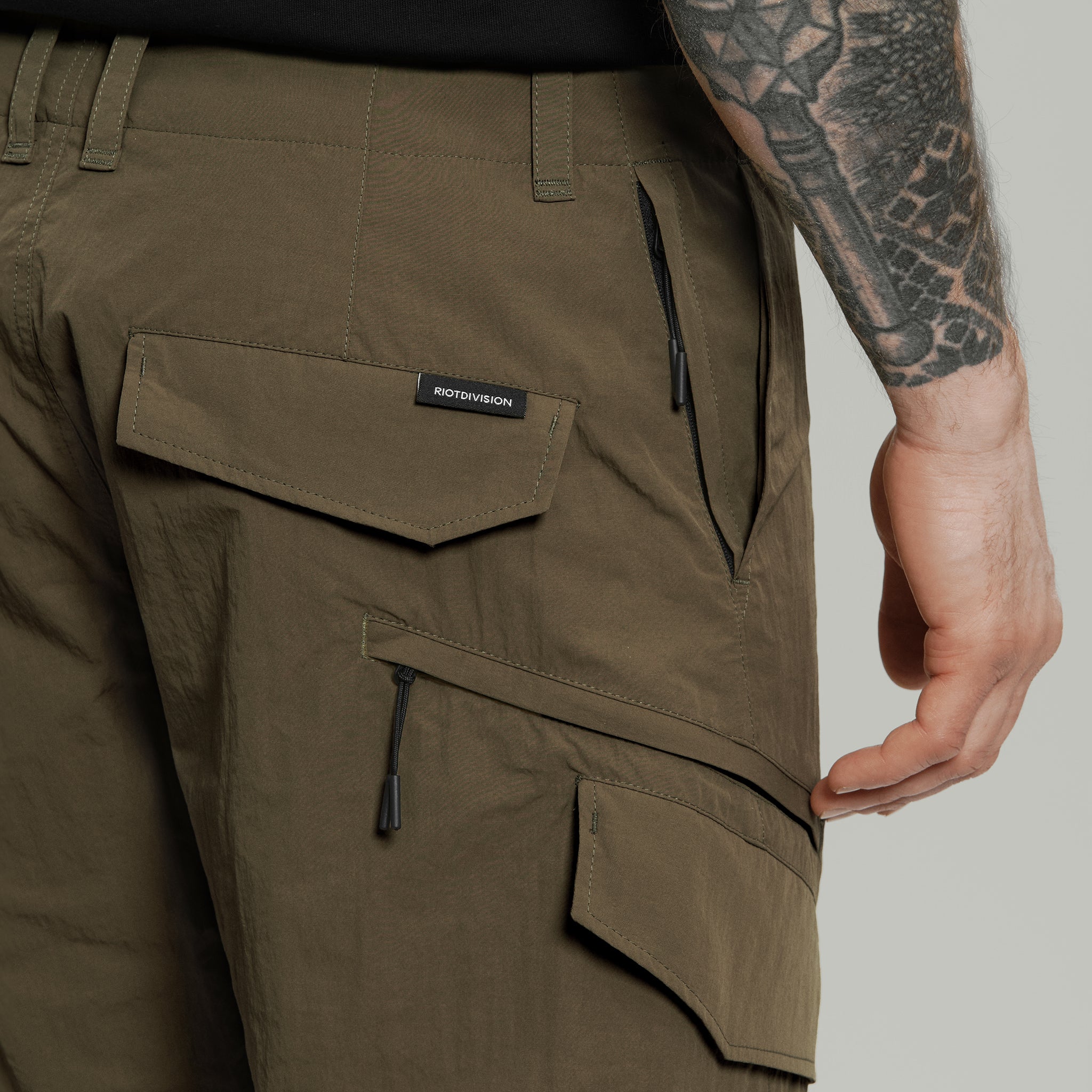 - cargo welt pockets with velcro flaps / zipped pocket on the right thigh