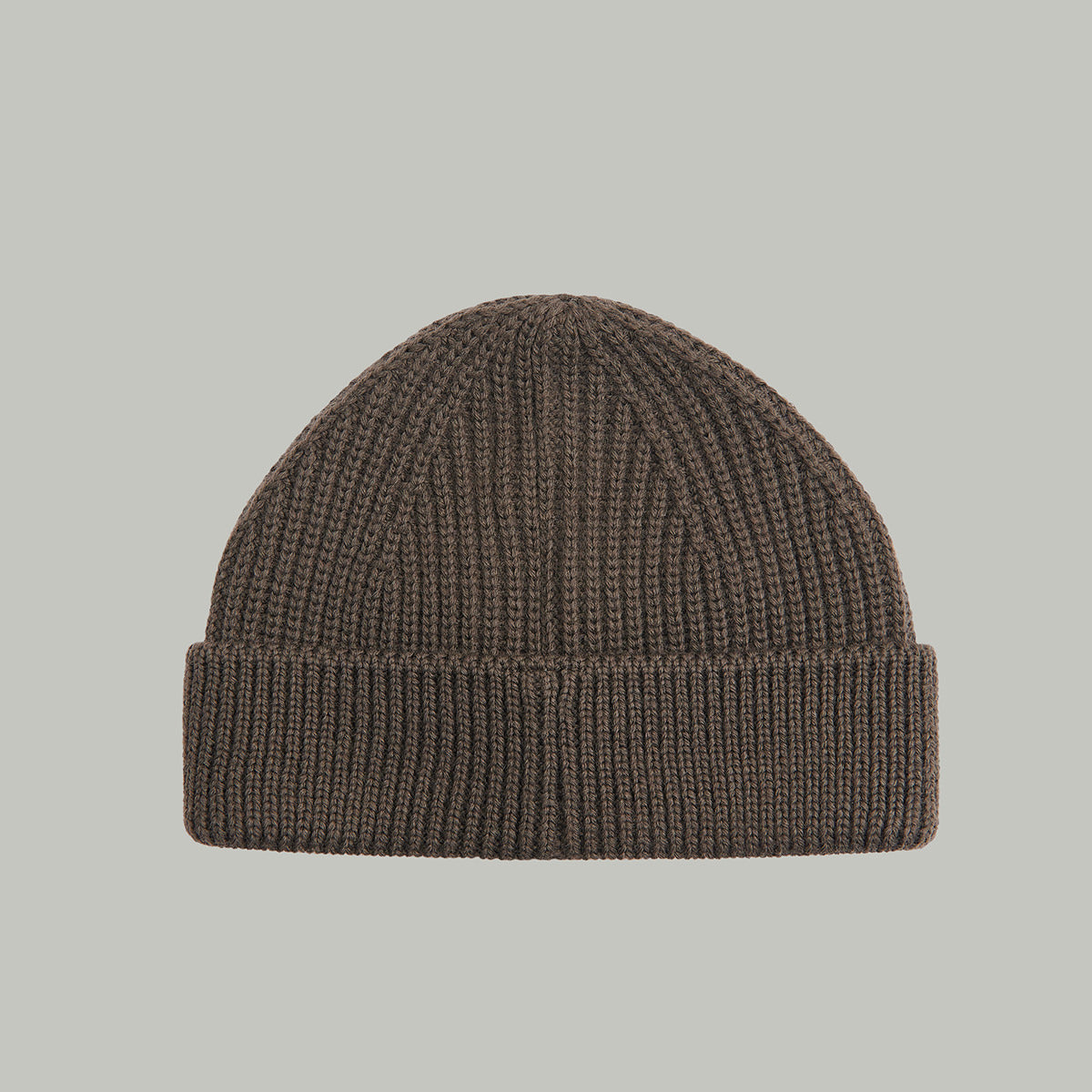 Merino Short Beanie Hat Morse Code Logo RD-MRNSBHMCL KHAKI
