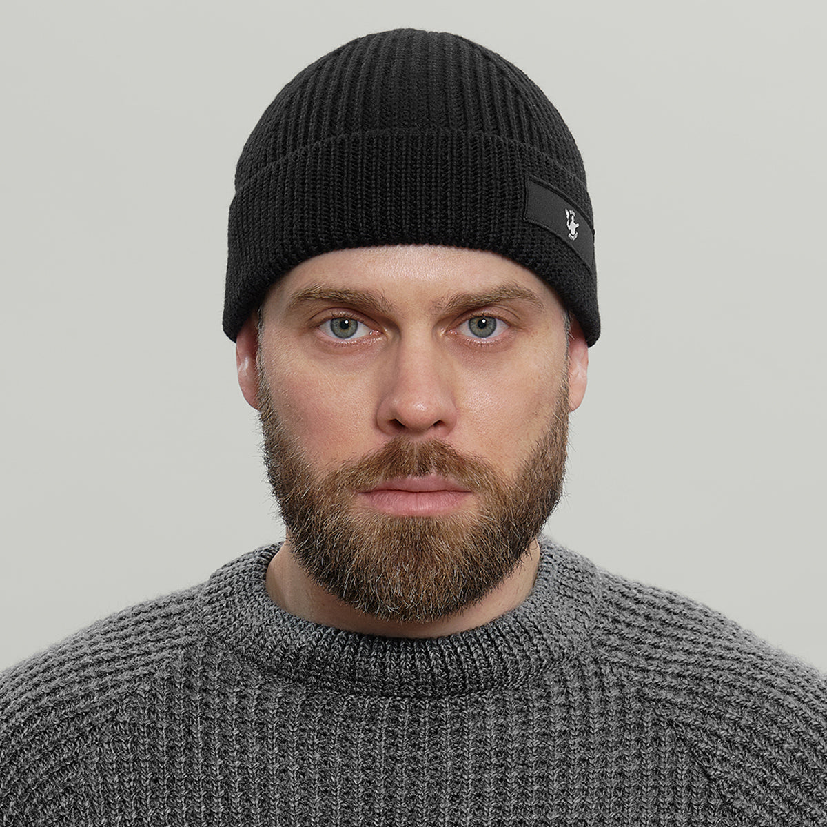 Merino Short Beanie Hat RD Logo RD-MRNSBHRDL BLACK