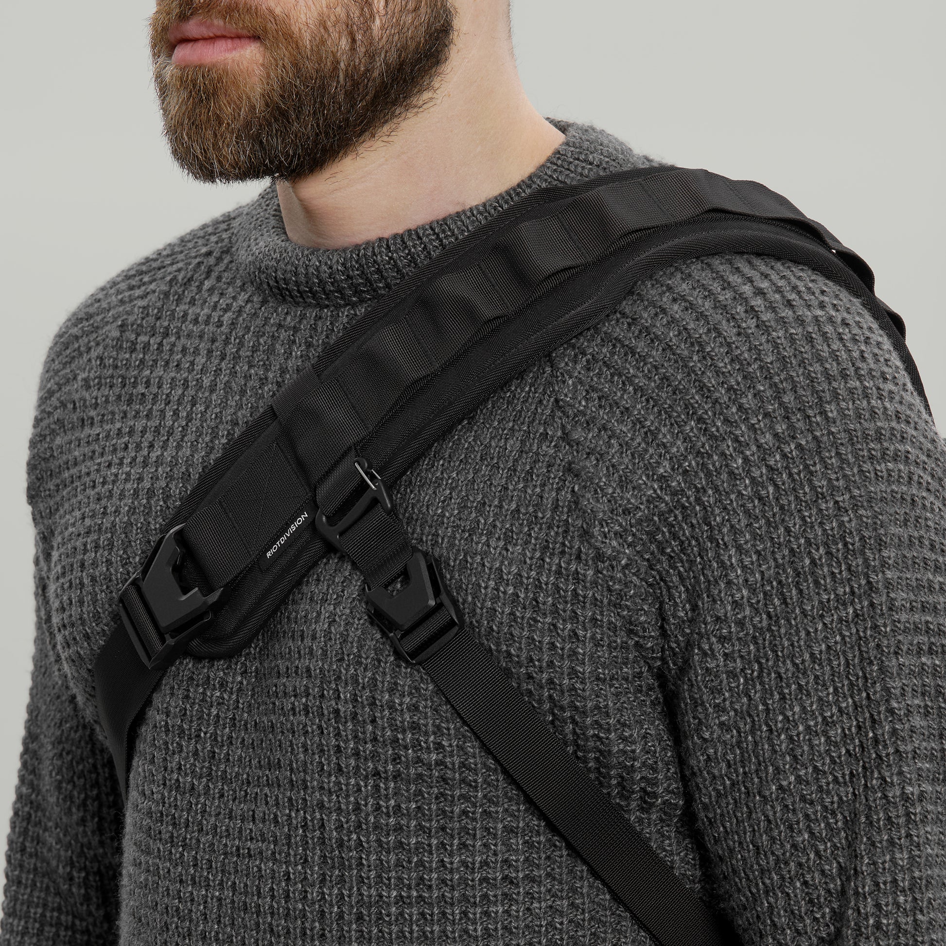 - ambidextrous quick-adjust padded shoulder strap with multiple attachment options / detachable stabilizing third strap