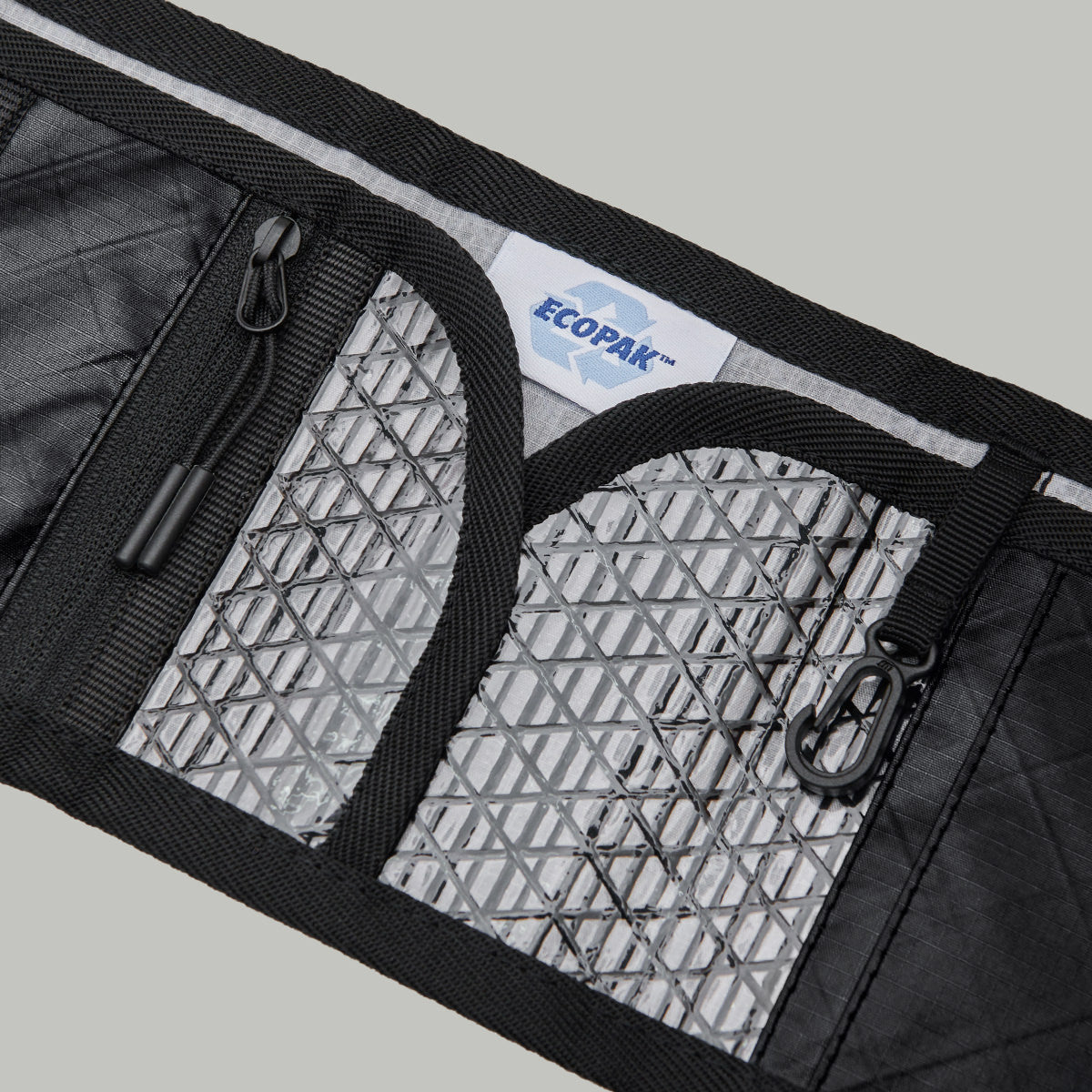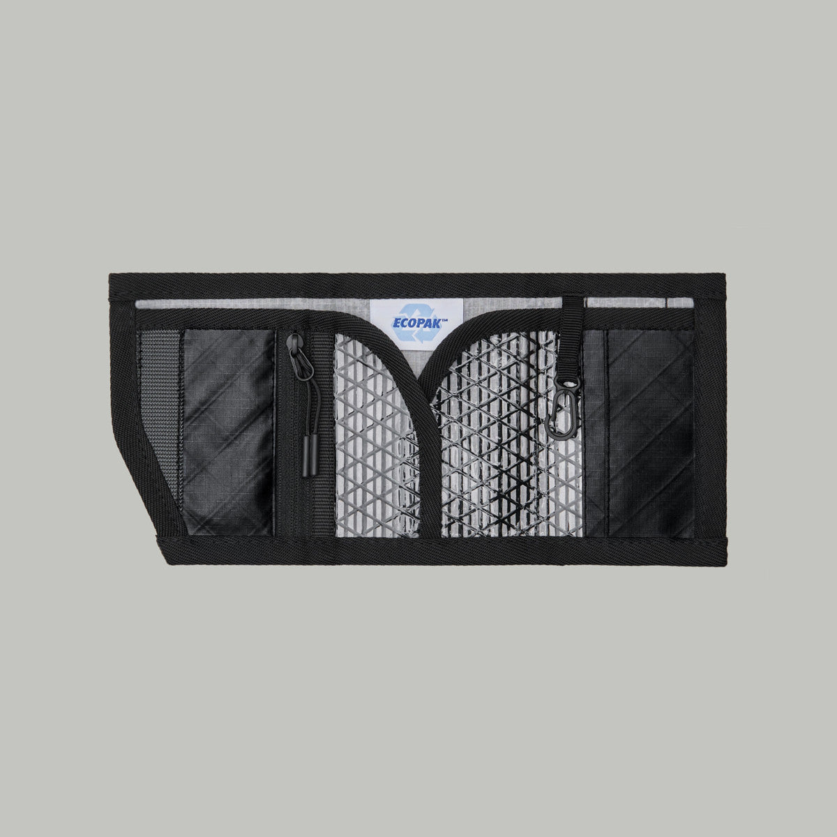 Classic foldable and compact build of the PRTCL wallet, made of two types of certified X-PAC™ / ECOPAK fabric — extra durable and lightweight. It can be used as single storage for paper cash, coins and cards.