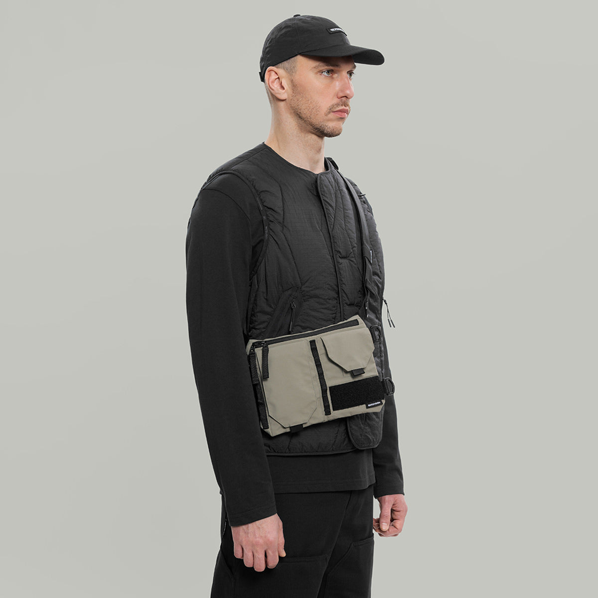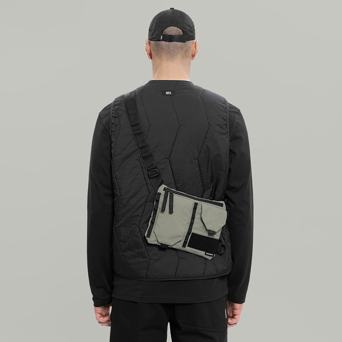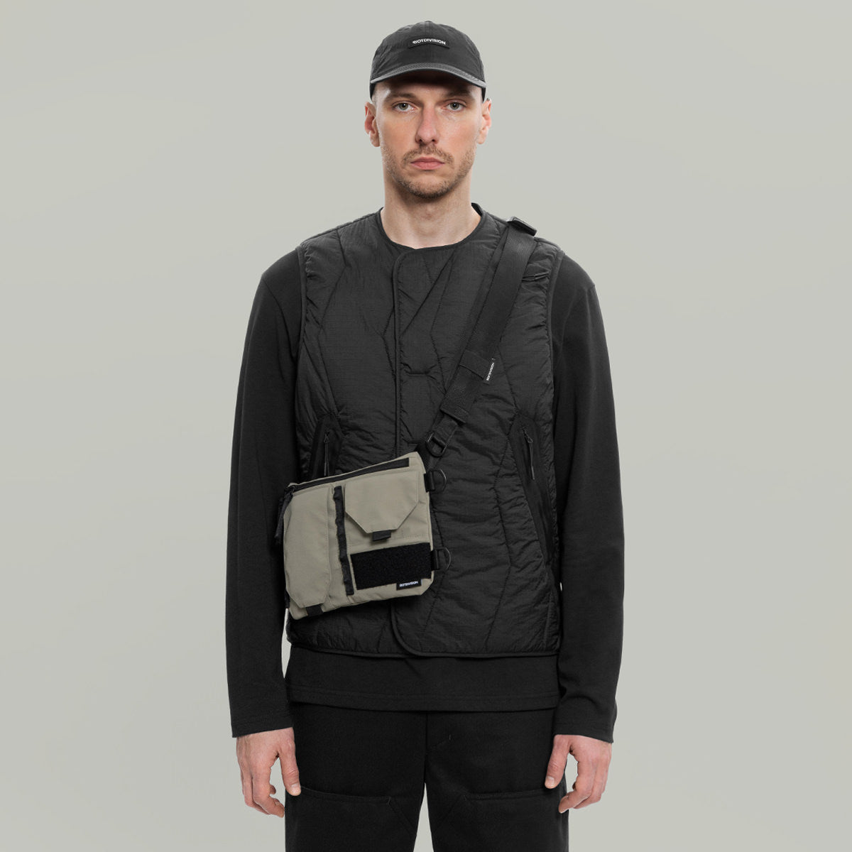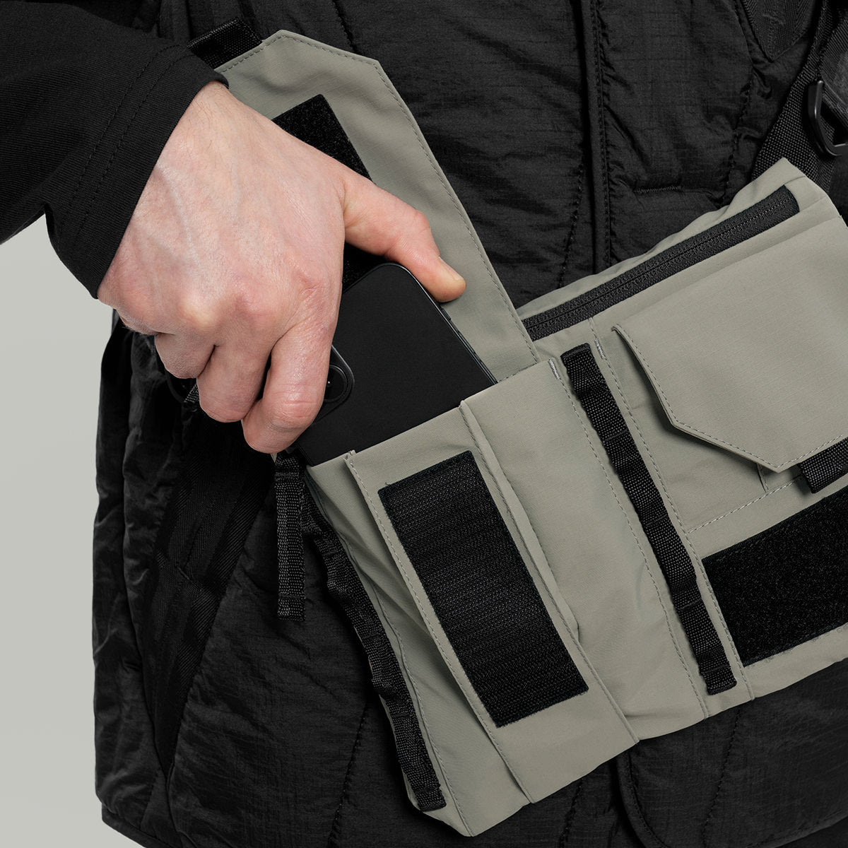 Compact shoulder bag, made of DWR coated nylon. Perfect for phone, powerbank, camera or any other handy items.