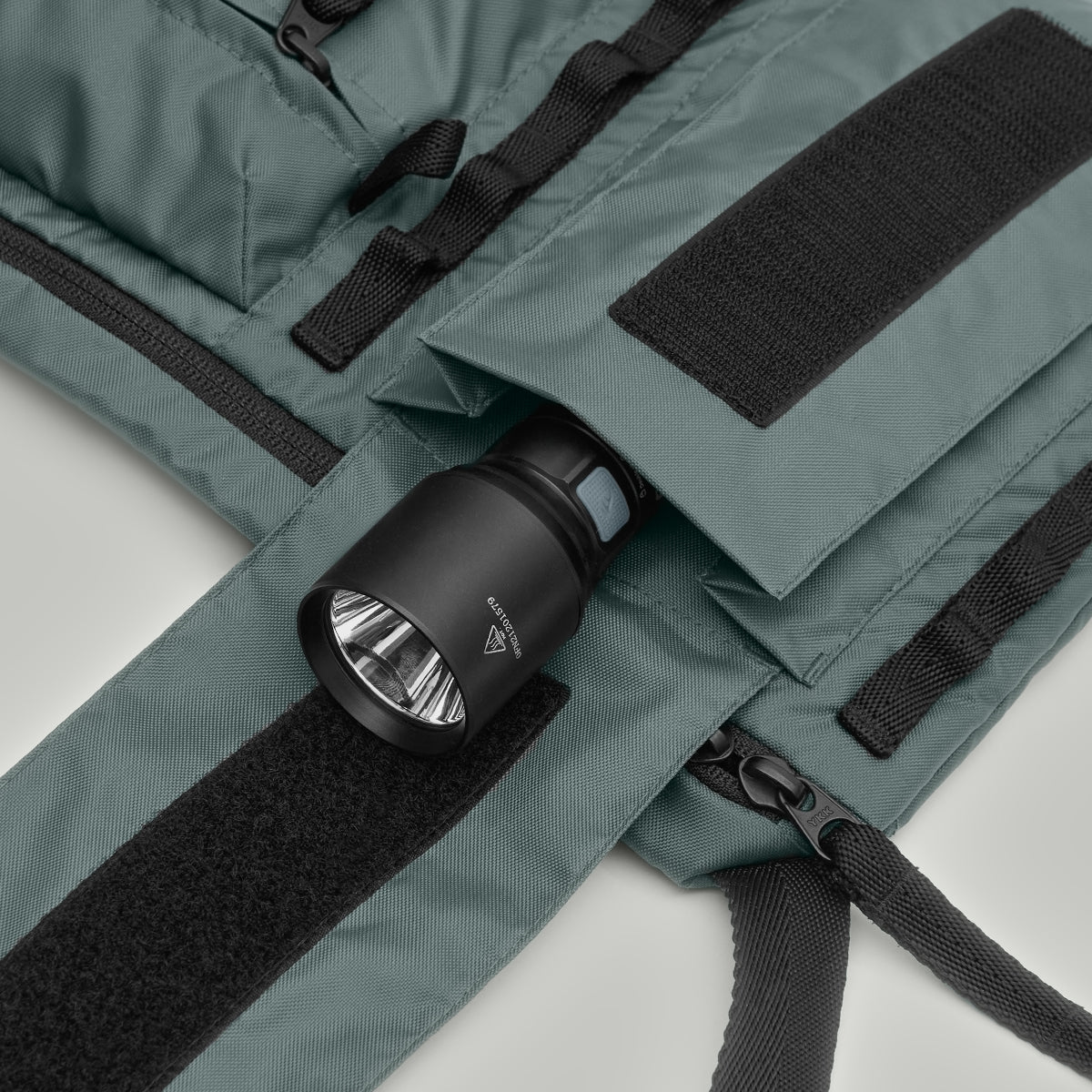 - 1 outer mag-styled pocket with velcro flap / outer zipped pocket