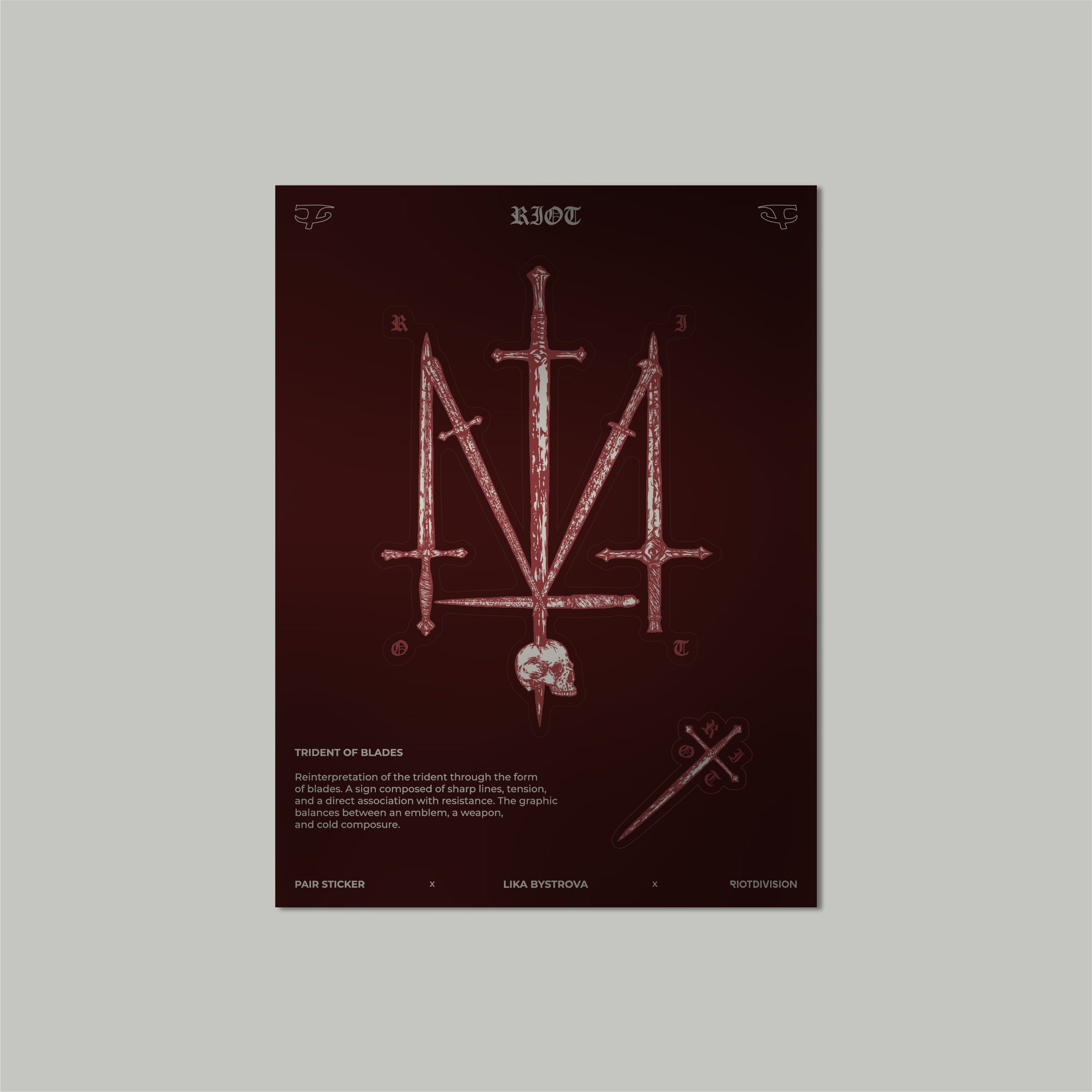 Reinterpretation of the trident through the form of blades. a sign composed of sharp lines, tension, and a direct association with resistance.