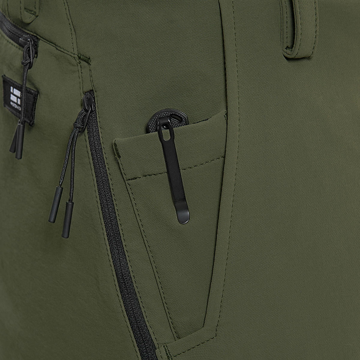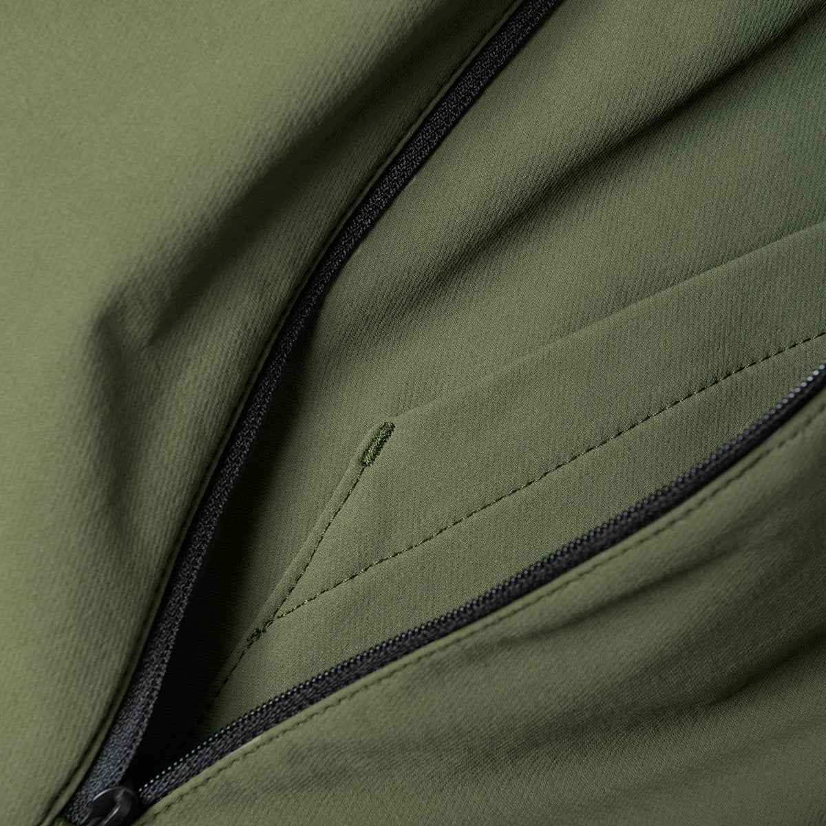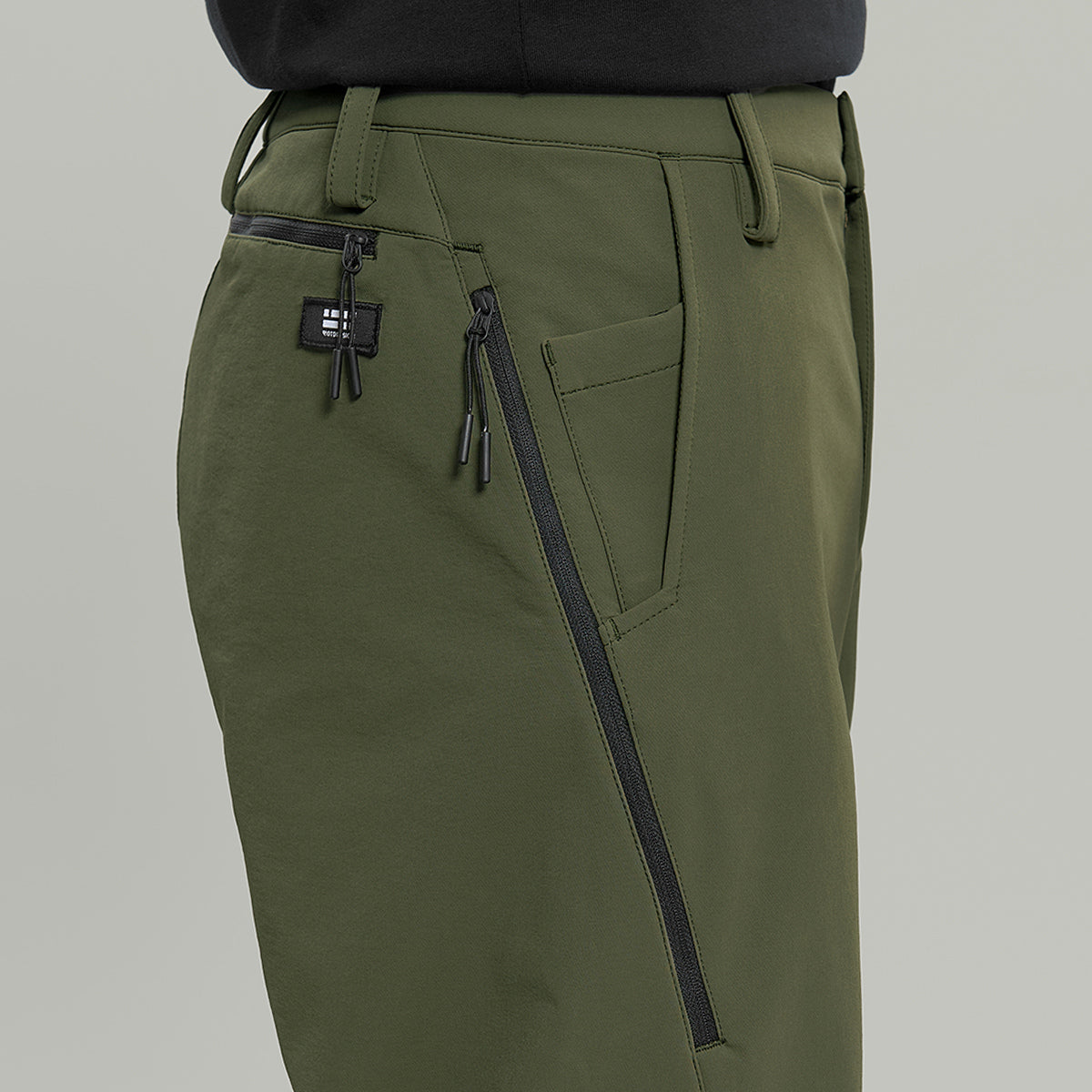 Pants with concealed pockets, made of WR coated stretchable midweight nylon for added cold / wet weather protection.